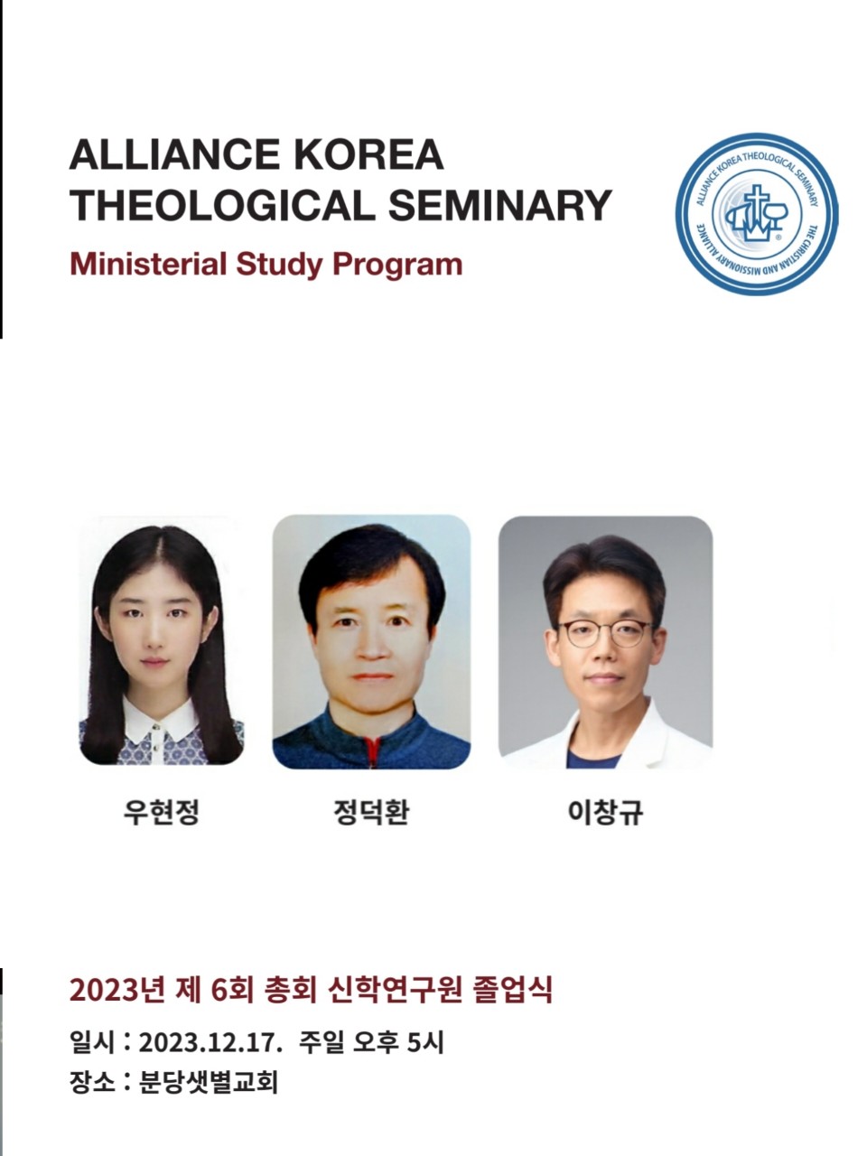 • 졸업자 : 우현정, 정덕환, 이창규 전도사