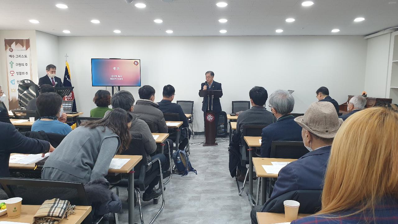 총회 신년 하례회및 사무실 이전 예배가 2022년 01월10일(월) 총회 세미나실에서 총회원 42명이 참석한 가운데 진행되었다.